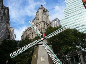 Nation Branding: a one man show? - Hanneke Verhelst, elections.fleishmanhillard.com: NY400: Dutch Public Diplomacy: "Those living in New York City might have seen the awkward sight in downtown Manhattan in September 2009: a little Dutch Village including (of course!) a windmill right at the Bowling Green. ‘New Amsterdam’, as the village was named, was part of a large scale public diplomacy campaign of the Dutch government to celebrate that 400 years ago the Dutch founded New York City. For several weeks, not too far from Ground Zero,